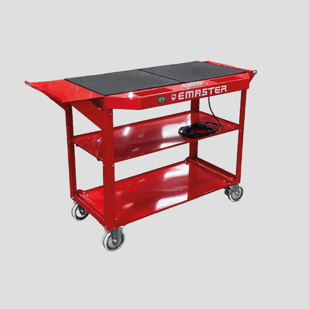 A bancada de trabalho Emaster UP foi desenvolvida para melhorar e facilitar o trabalho do mecânico na oficina, sendo um suporte importante em diversos momentos.