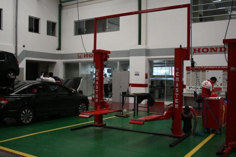 Elevadores automotivos Emaster nas concessionárias Honda.